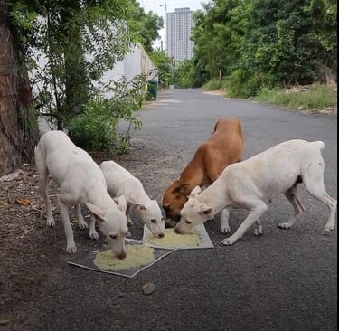 PAWS works closely with experienced feeders and volunteers to ensure that feeding is carried out responsibly, hygienically, and without causing disruption or conflict. Meals are provided at appropriate locations and times, helping animals develop routine and reducing stress, aggression, and scavenging-related injuries.